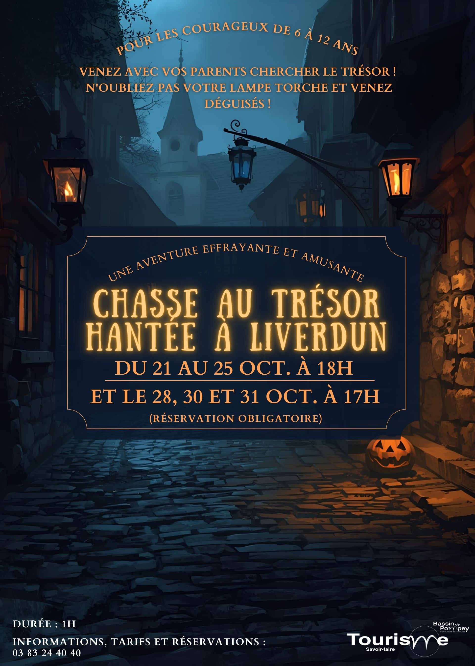 La prochaine animation Halloween « Chasse au Trésor Hantée à Liverdun » aura lieu  du 21 octobre au 25 octobre à 18h, et le 28, 30 et 31 octobre 2025 à 17h à Liverdun