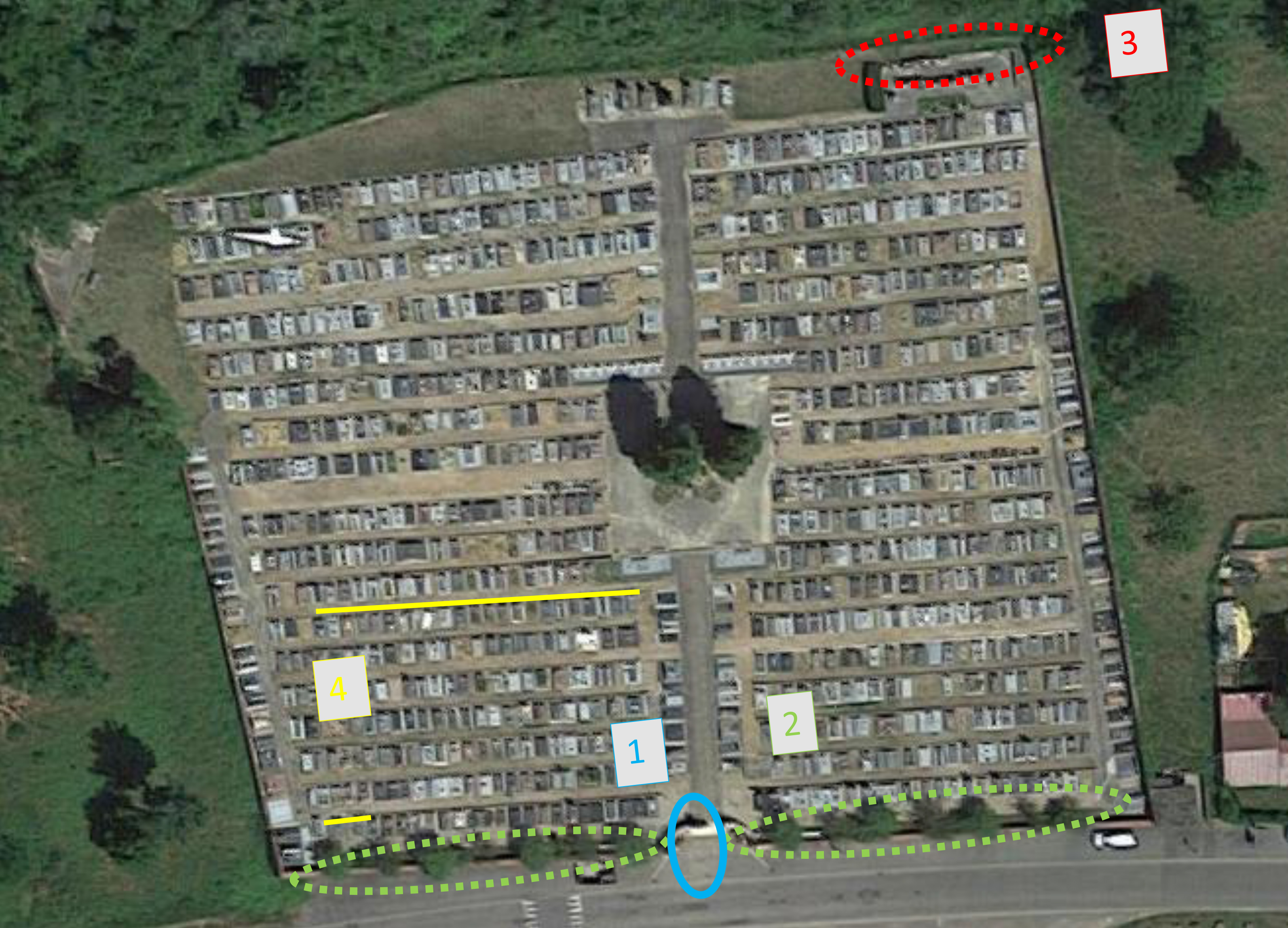 2) Création de dalles béton en partie basse pour déplacement des columbariums.